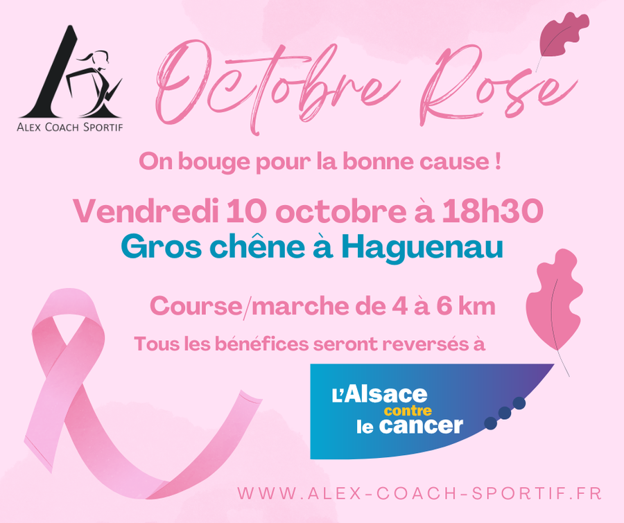 Je vous donne rendez-vous le vendredi 10 octobre à 18h30 au Gros Chêne à Haguenau pour bouger tous ensemble pour la bonne cause.